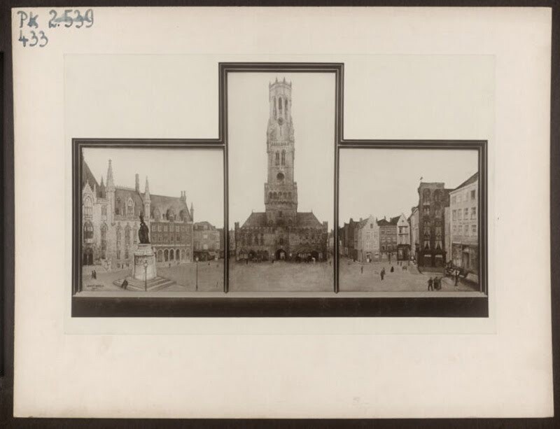 Triptych “The Great Market in Bruges” by Felix Albrecht Harta